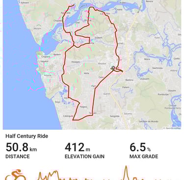 We have two routes planned for the upcoming event 'Rotary Republic Cyclothon 2025'. Participants can choose between a HALF CENTURY RIDE (50KM) or a FUN RIDE (17KM).